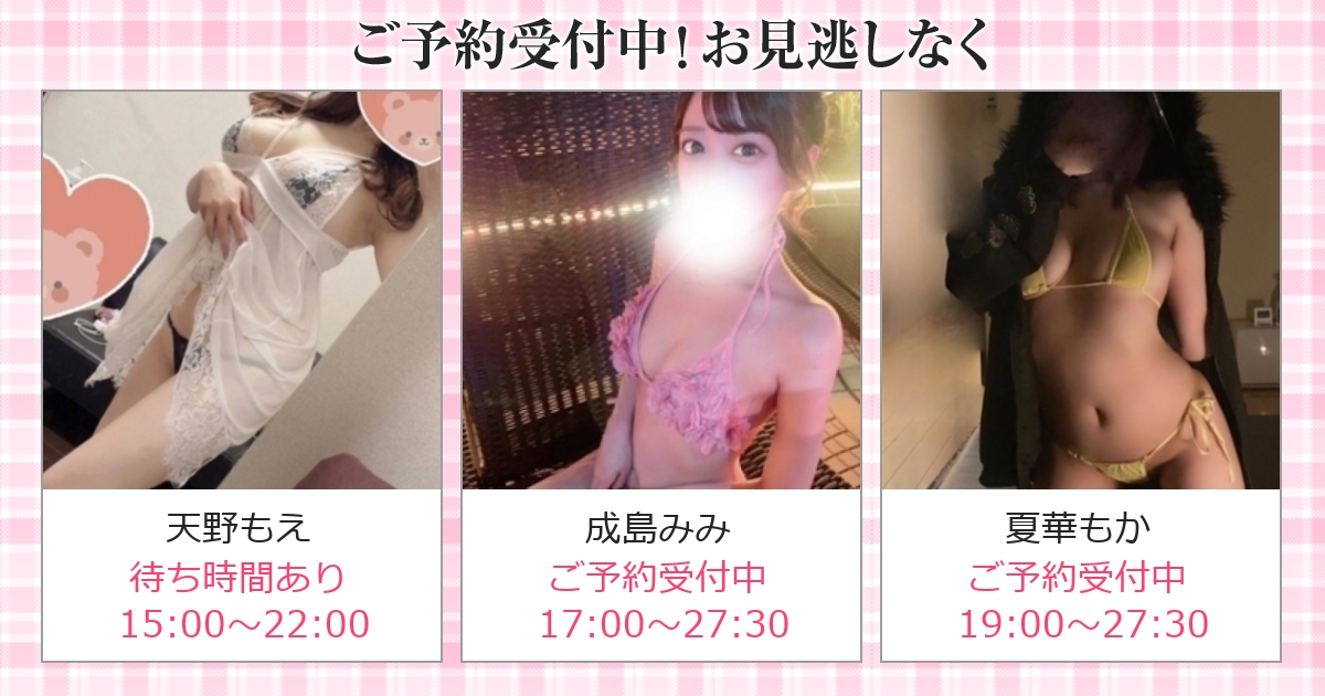 ここが今夜の強みです。深夜帯に人気どころがしっかり入っているので、遅い時間から空気を変えたい方、最後まで夜を楽しみたい方にはかなり魅力的。明日が金曜だと思うと、少しだけ大胆に選びたくなる夜にぴったりでしょう。今日は、誰を選ぶかより、この週後半を何時からご褒美に変えるかで決めるのが正解かもしれません。