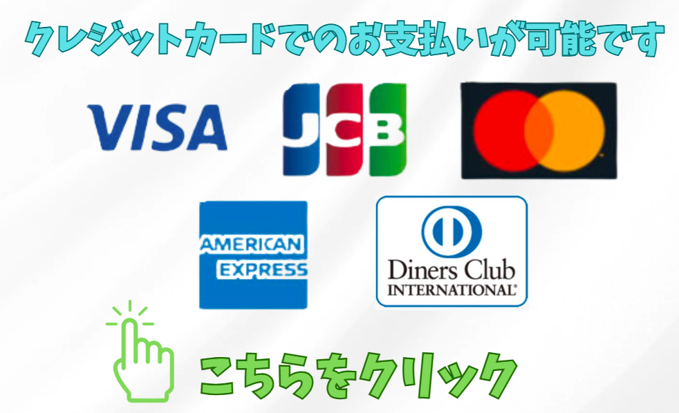 ご利用いただけるカードは『VISA』『MASTER』『JCB』『AMEX』『DINERS』になります。